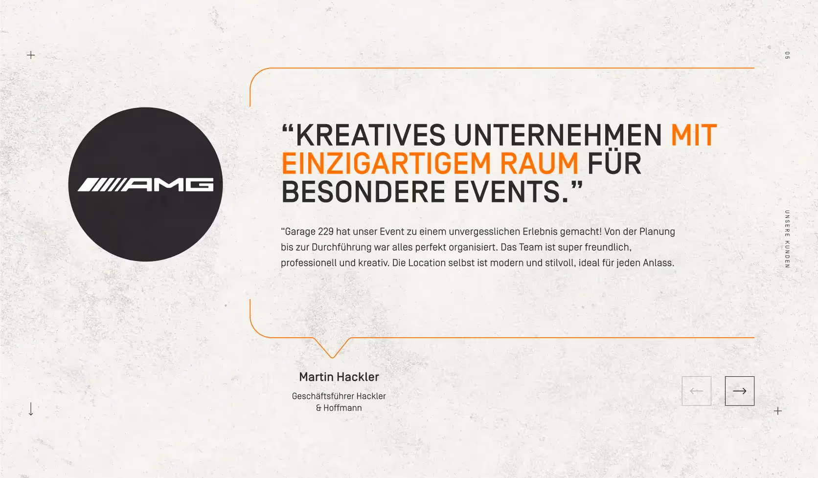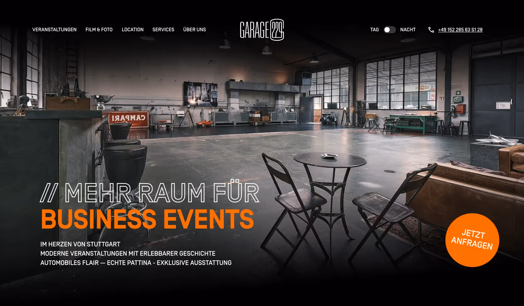 View websiteWe developed an individual design and web concept for Garage229 - formerly a car paint shop with a unique industrial flair, now a much sought-after event location. The aim was to bring the special atmosphere of the location to life digitally and at the same time raise the visual appearance to a new level.