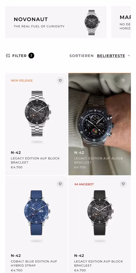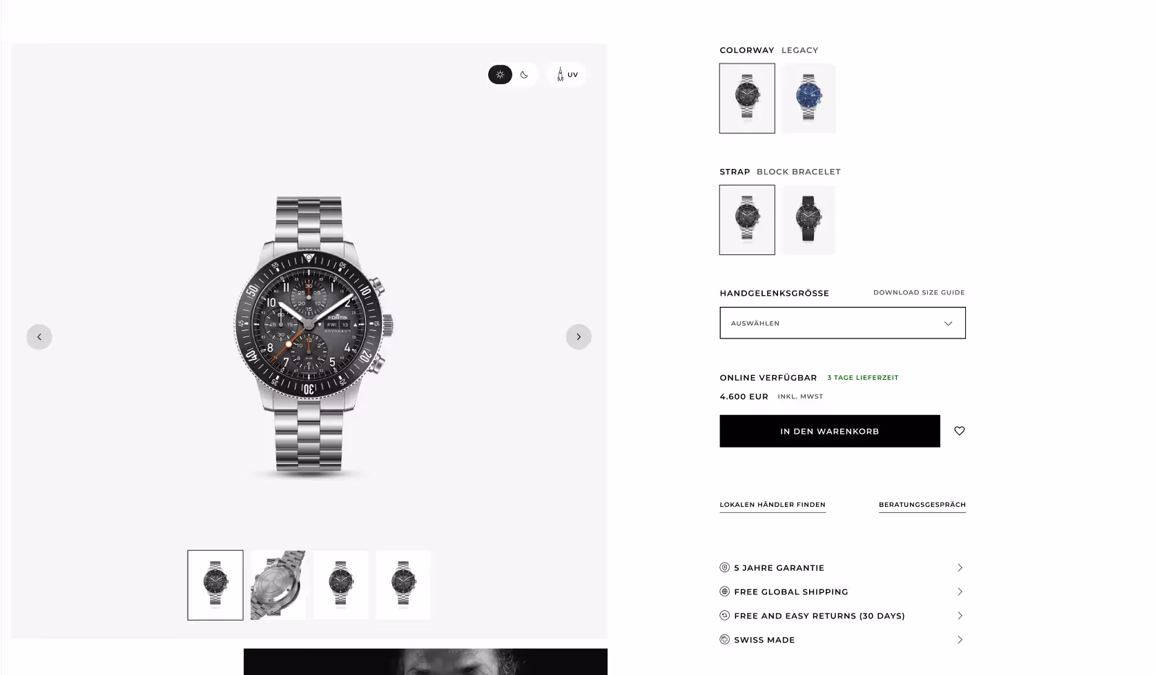 We are particularly proud of the features implemented: an interactive 3D watch model allows customers to explore every detail, while storytelling product pages bring the history and craftsmanship behind each timepiece to life. Sophisticated upsell and cross-sell features complete the premium shopping experience, setting the bar exceptionally high for premium watch brands in e-commerce - a complete success that seamlessly combines elegance, functionality and brand identity.