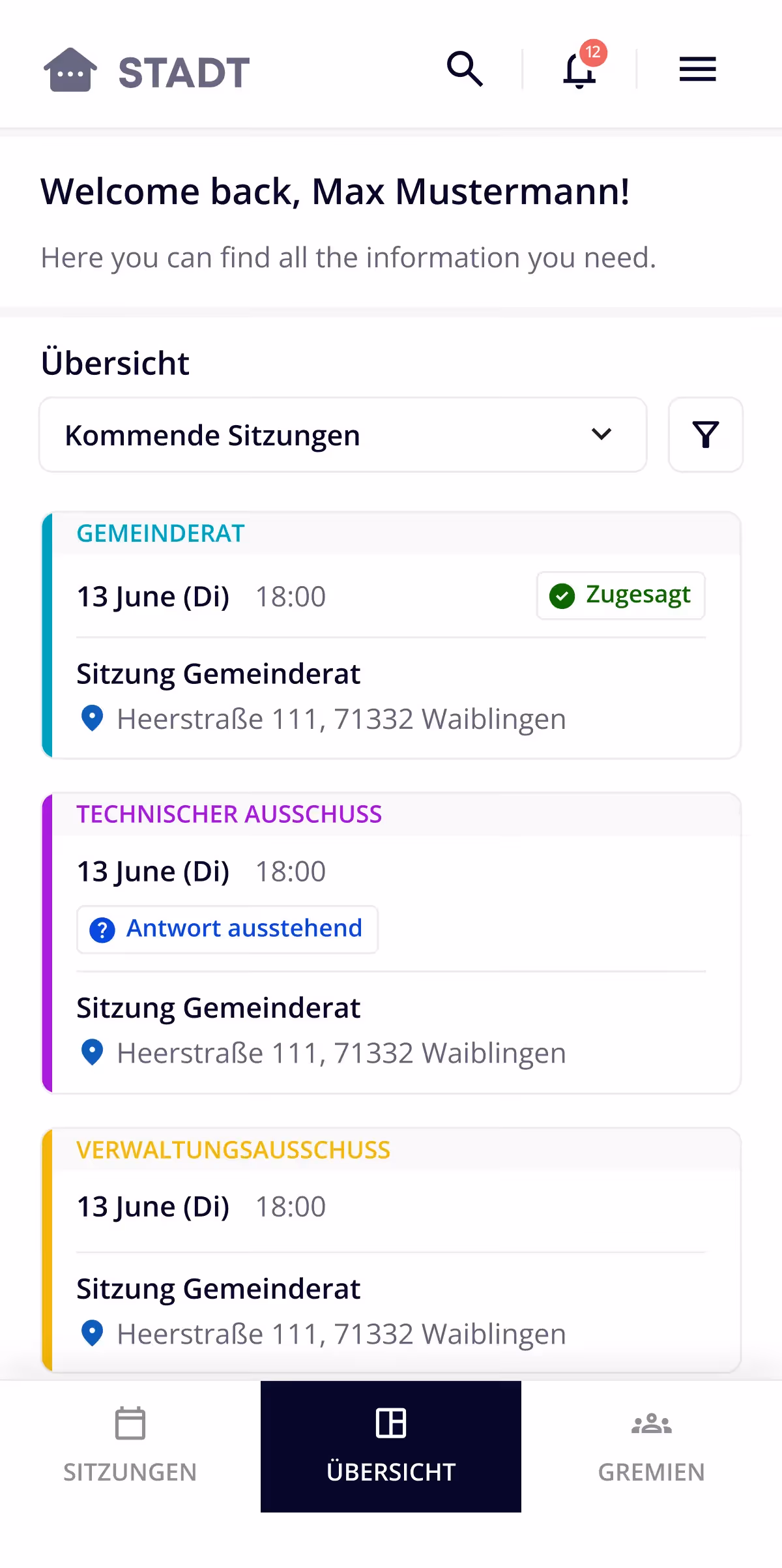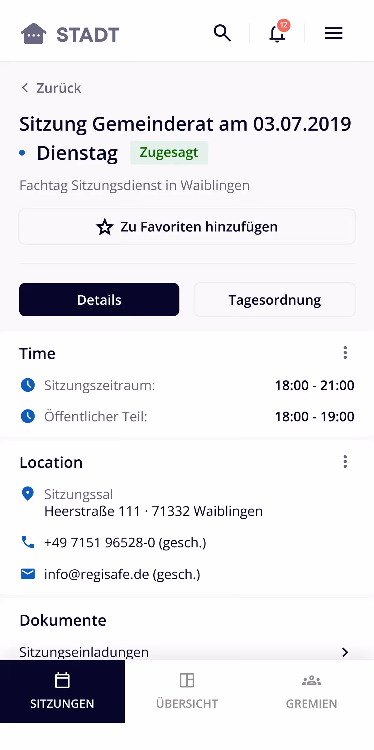An intuitive dashboard ensures quick access to important information and offers personalized views to create an efficient working environment. Enhanced search functions with improved filter options make it easy to find the documents and information you need. An optimized view of meetings presents all relevant information clearly and easily accessible, making it easier to prepare and conduct meetings. The user interface is customizable so that the appearance of the regisafe council information system can be adapted to individual requirements.